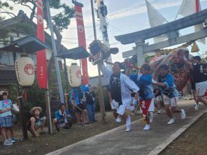 2025年8月15日(金)才田町の獅子舞があり、春日神社と八幡神社の獅子舞が披露されました。今年は、外国の方の移住もあり、大いに盛り上がった獅子舞でした。
