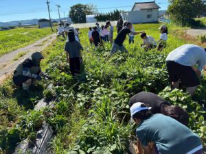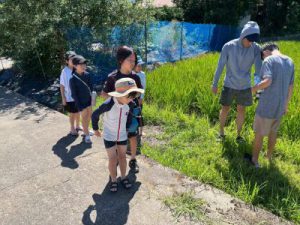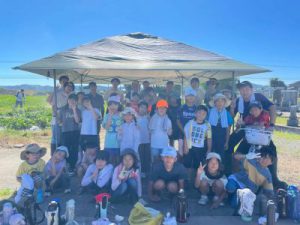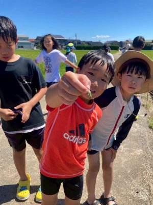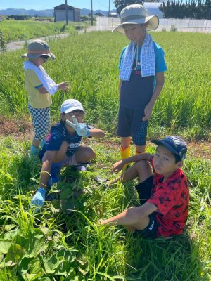 夏休み中は、子供会で育てたさつまいも畑の草むしりをし、どんな生き物がいるかを調査し、自然の大切さを肌で感じながら学んでいます。