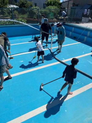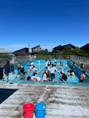 才田町には昔の小学校時代のプールが今もまだ残っており、夏休みになると子供会管理のもと、子どもたちがプールを楽しみにしています。